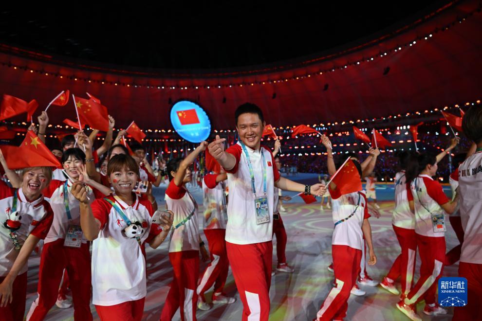 7月28日,中国大学生体育代表团在开幕式上入场。