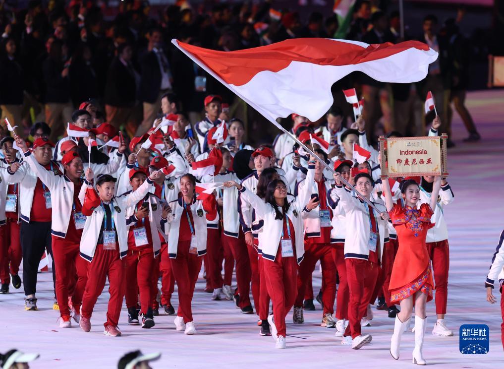 7月28日,印度尼西亚大学生体育代表团在开幕式上入场。