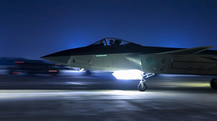 东部战区空军航空兵某旅“王海大队”飞行员在夜间飞行训练中驾机滑行(2023年7月14日摄)。新华社发(李吉光 摄)