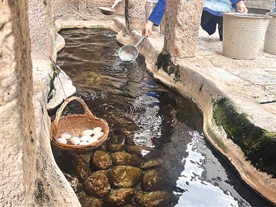 在云南大理洱源县牛街乡,当地居民利用地热水加热鸡蛋。