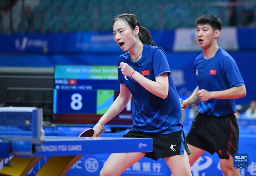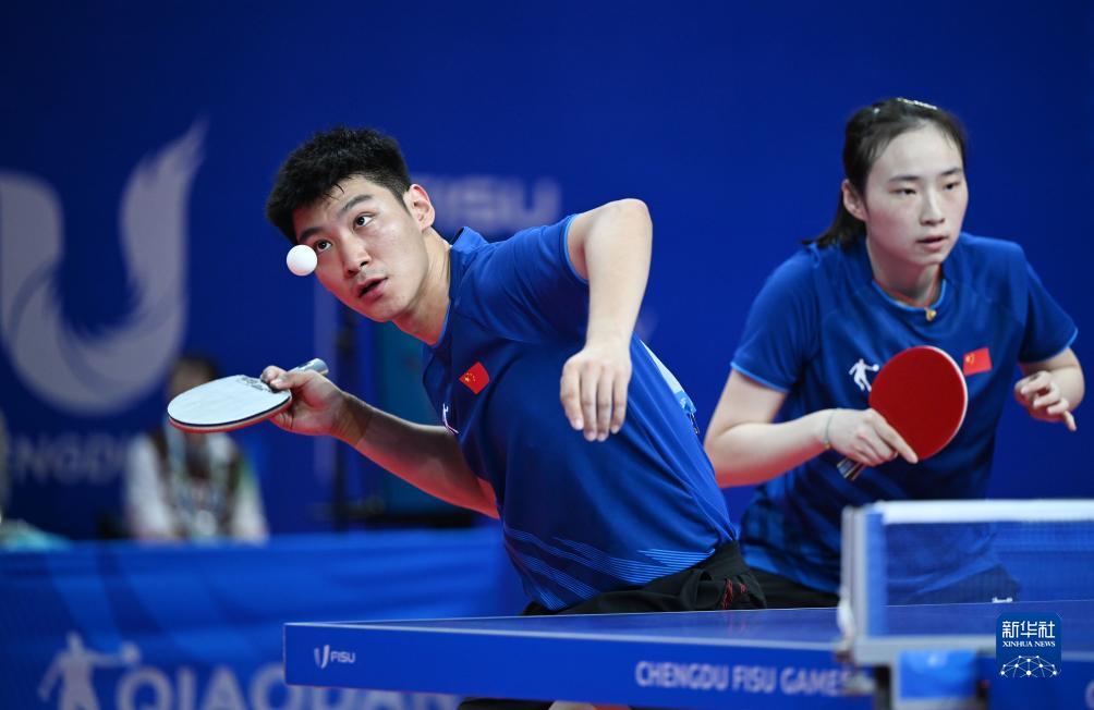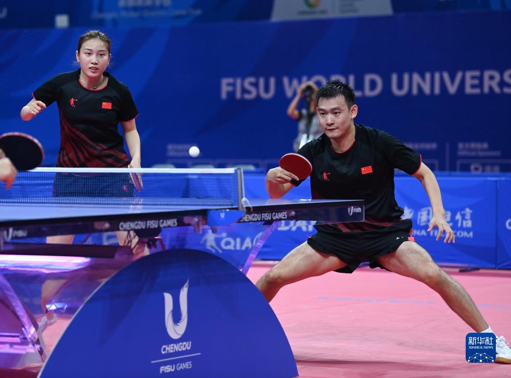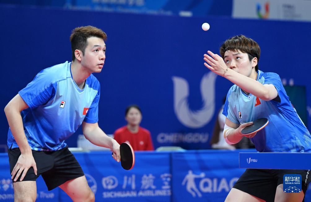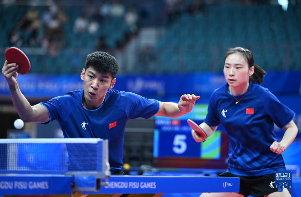 当日,在成都举行的第31届世界大学生夏季运动会乒乓球比赛混合双打半决赛中,中国组合薛飞/王晓彤以4比0战胜中国香港组合何钧杰/杜凯琹,晋级决赛。