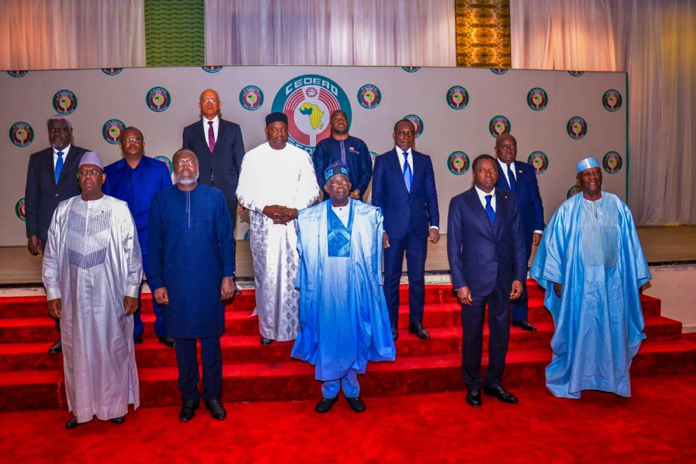 7月30日,在尼日利亚首都阿布贾,参加西非国家经济共同体(西共体)紧急会议的西非国家领导人合影。西非国家经济共同体领导人当日在尼日利亚首都阿布贾召开紧急会议,要求尼日尔政变军人在一周内释放遭扣押的总统巴祖姆并恢复其总统职权。新华社发(西共体供图)