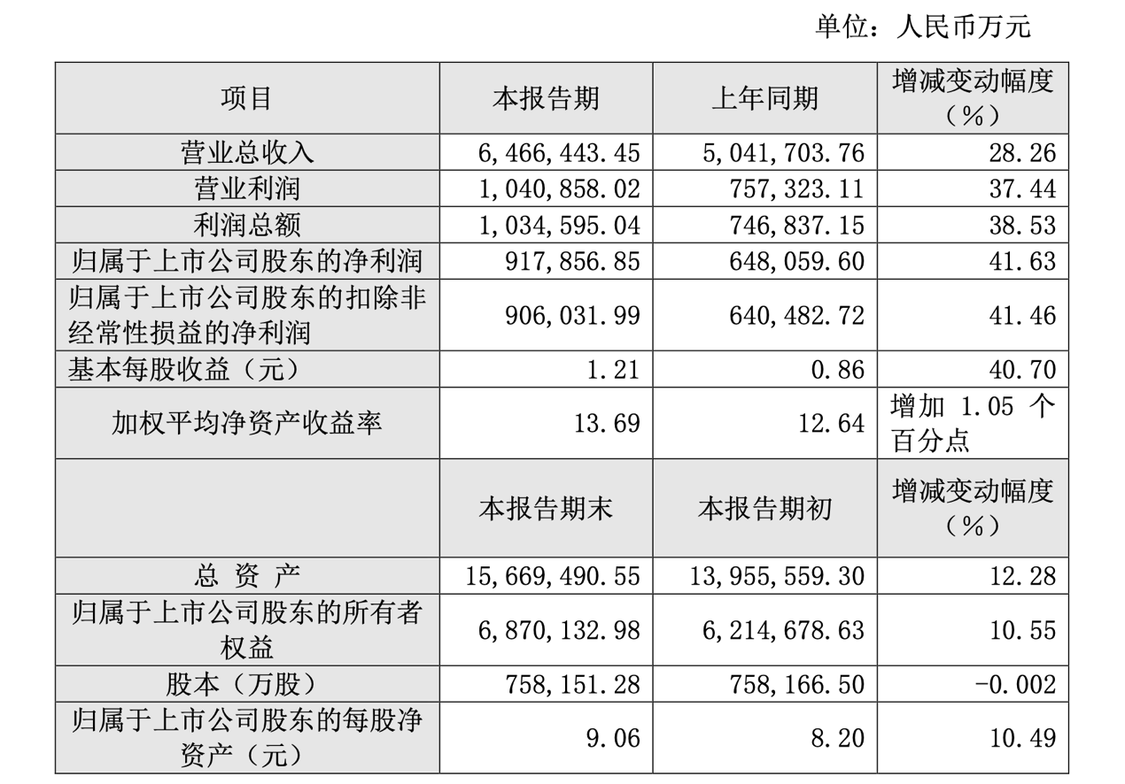 8月3日,隆基绿能科技股份有限公司(601012.SH,以下简称“隆基绿能”)发布2023半年度业绩快报。报告期内公司实现营业总收入646.64亿元,同比增长28.26%;实现归属于上市公司股东的净利润91.79亿元,同比增长41.63%;扣除非经常性损益后归属于上市公司股东的净利润为90.60亿元,同比增长41.46%;基本每股收益1.21元,同比增长40.70%。