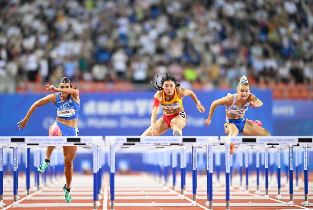 新华社成都8月4日电(记者李春宇、黄耀漫)4日晚,在全场的欢呼声中,中国队人气选手吴艳妮摘得成都大运会女子100米栏银牌,12秒76的成绩也同时达标世锦赛和巴黎奥运会。