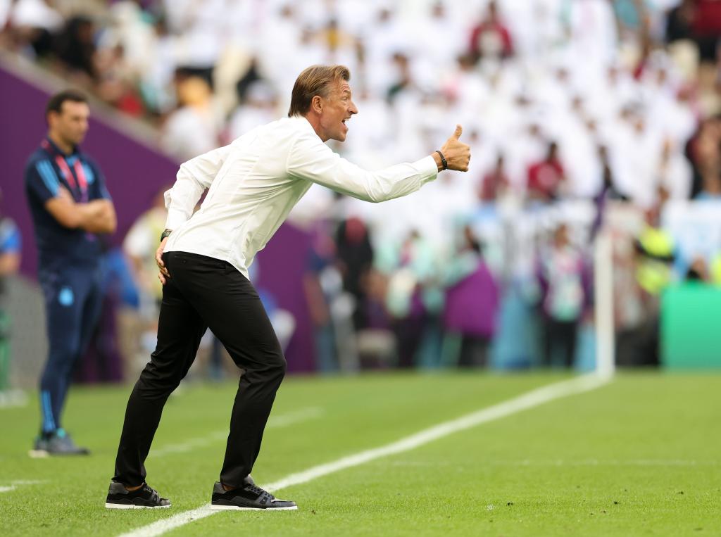 2022年11月22日,时任沙特阿拉伯队主教练勒纳尔在场边指挥,沙特队2:1战胜阿根廷队。新华社记者韩岩摄