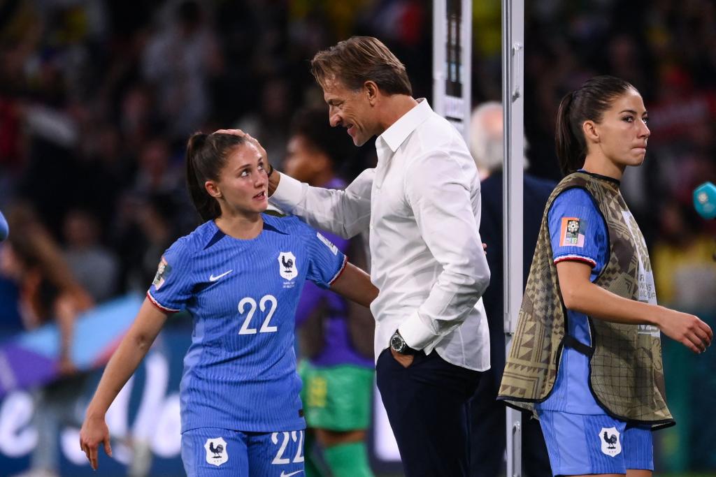 7月29日,法国队主教练勒纳尔(右)在场边指挥,法国队以2:1战胜巴西队。新华社记者熊琦摄