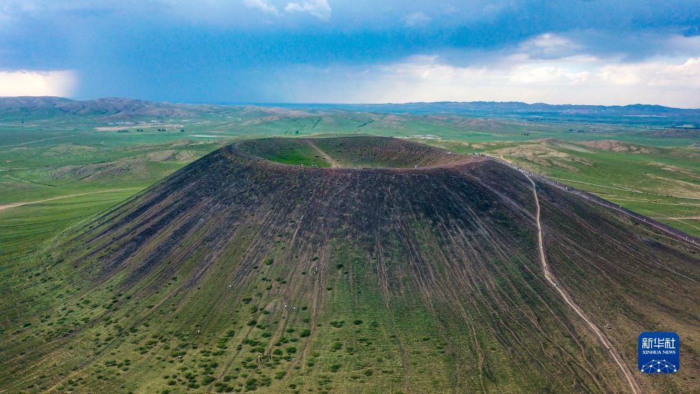 这是内蒙古乌兰察布市察哈尔右翼后旗草原上的火山景观(8月6日摄,无人机照片)。