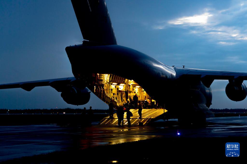8月18日,一辆军用运输机停在加拿大西北地区耶洛奈夫机场,准备疏散病患。新华社发(加拿大武装部队供图)