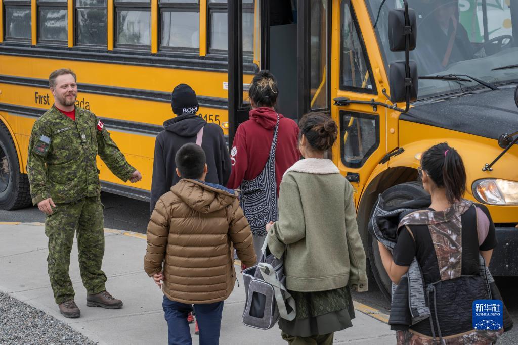 8月18日,加拿大武装部队人员在西北地区耶洛奈夫机场协助居民疏散。新华社发(加拿大武装部队供图)