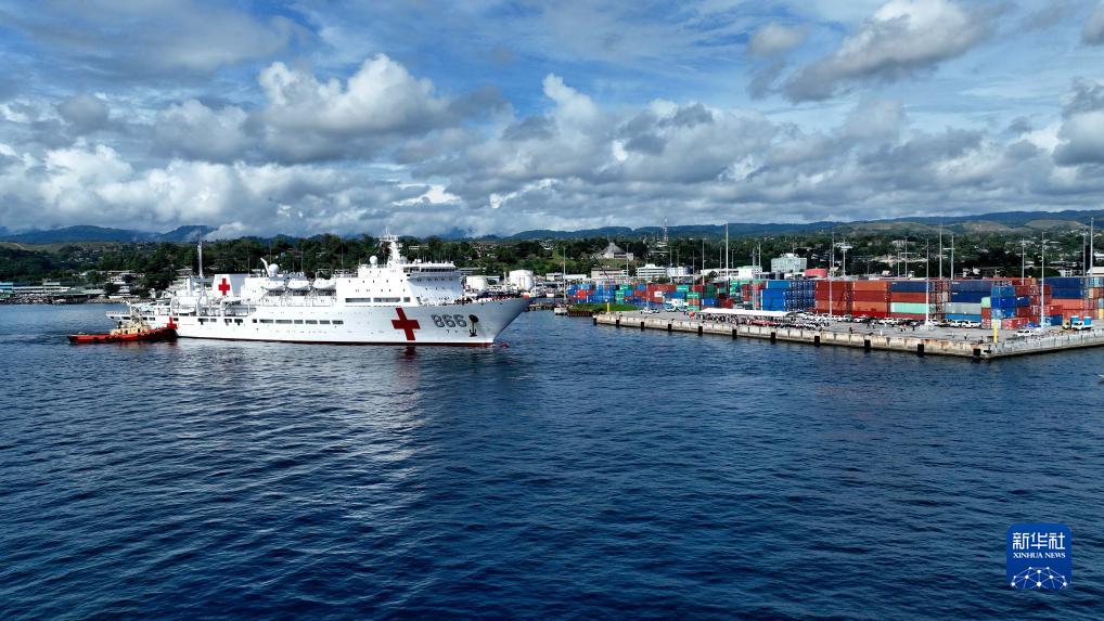 8月19日,中国海军“和平方舟”号医院船抵达所罗门群岛霍尼亚拉港。新华社发(桂江波 摄)