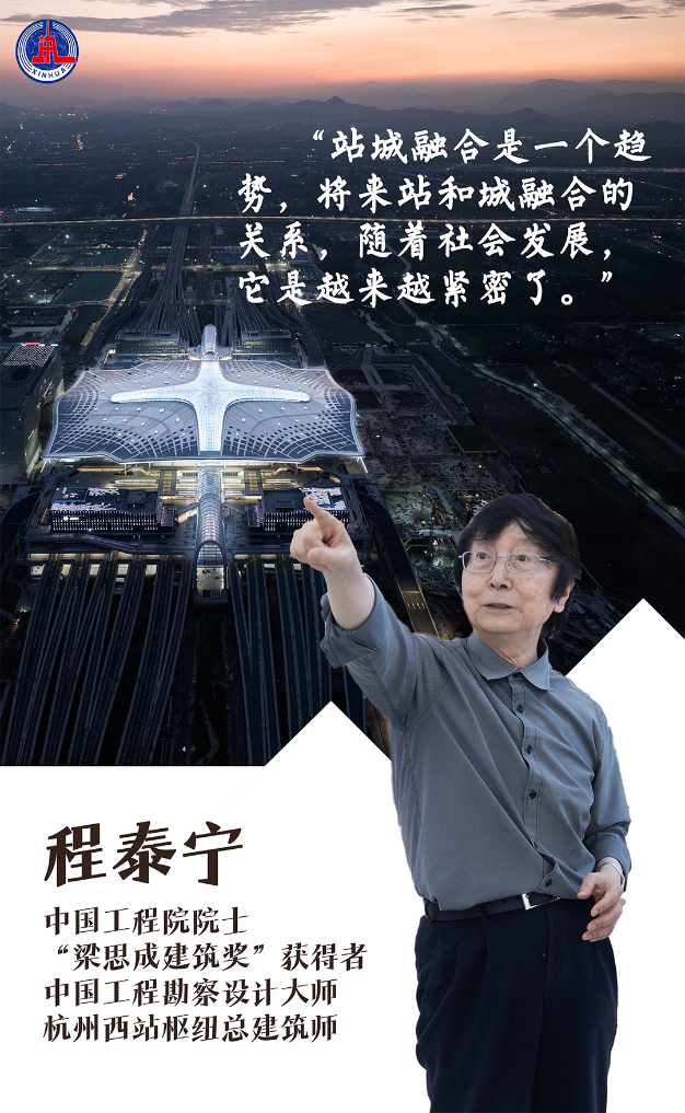2017年,当时已82岁高龄的中国工程院院士、中国建筑师最高奖“梁思成建筑奖”获得者、中国工程勘察设计大师程泰宁开始主持设计杭州西站。如今人们在杭州西站里看到的诸多新颖独特的设计,正是程泰宁多年探索和研究站城融合发展设计理念的实践成果,这些成果也使杭州西站成为了目前国内站城融合理念的标杆项目。