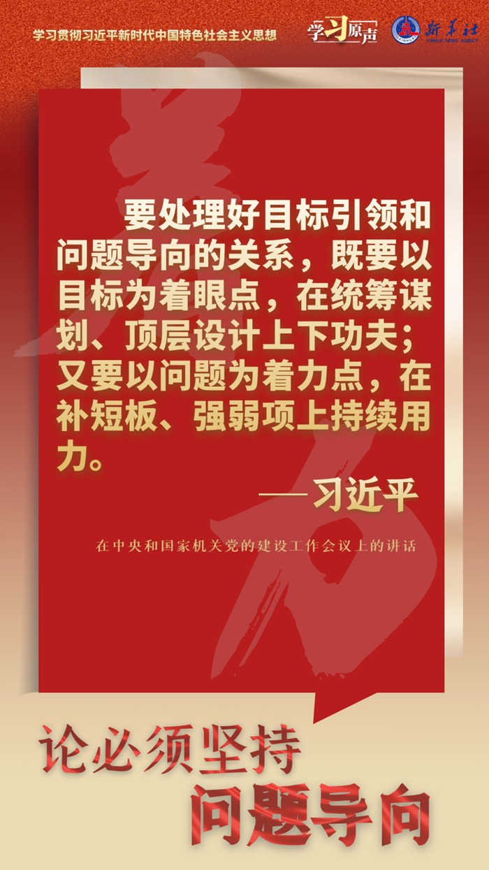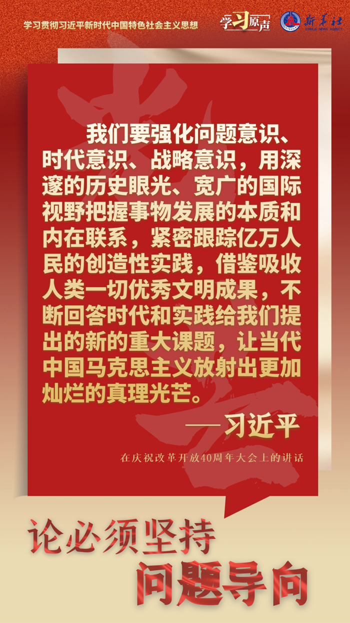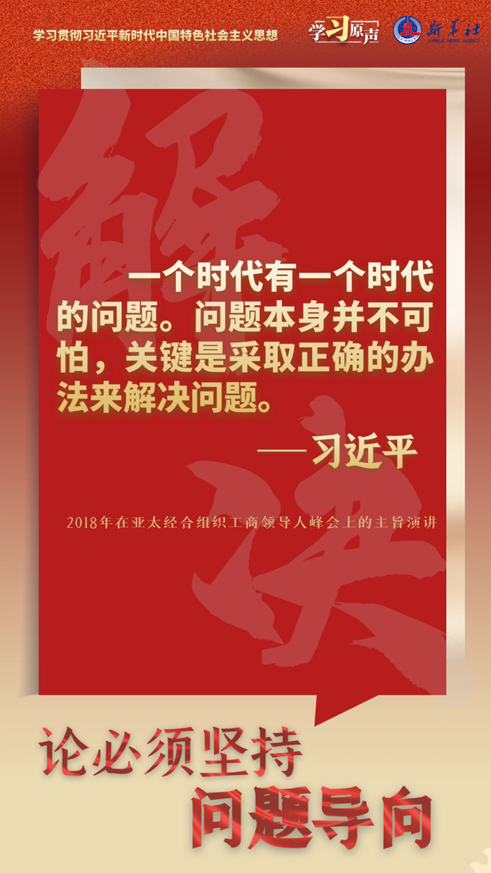 问题是时代的声音,回答并指导解决问题是理论的根本任务。今天我们所面临问题的复杂程度、解决问题的艰巨程度明显加大,给理论创新提出了全新要求。我们要增强问题意识,聚焦实践遇到的新问题、改革发展稳定存在的深层次问题、人民群众急难愁盼问题、国际变局中的重大问题、党的建设面临的突出问题,不断提出真正解决问题的新理念新思路新办法。