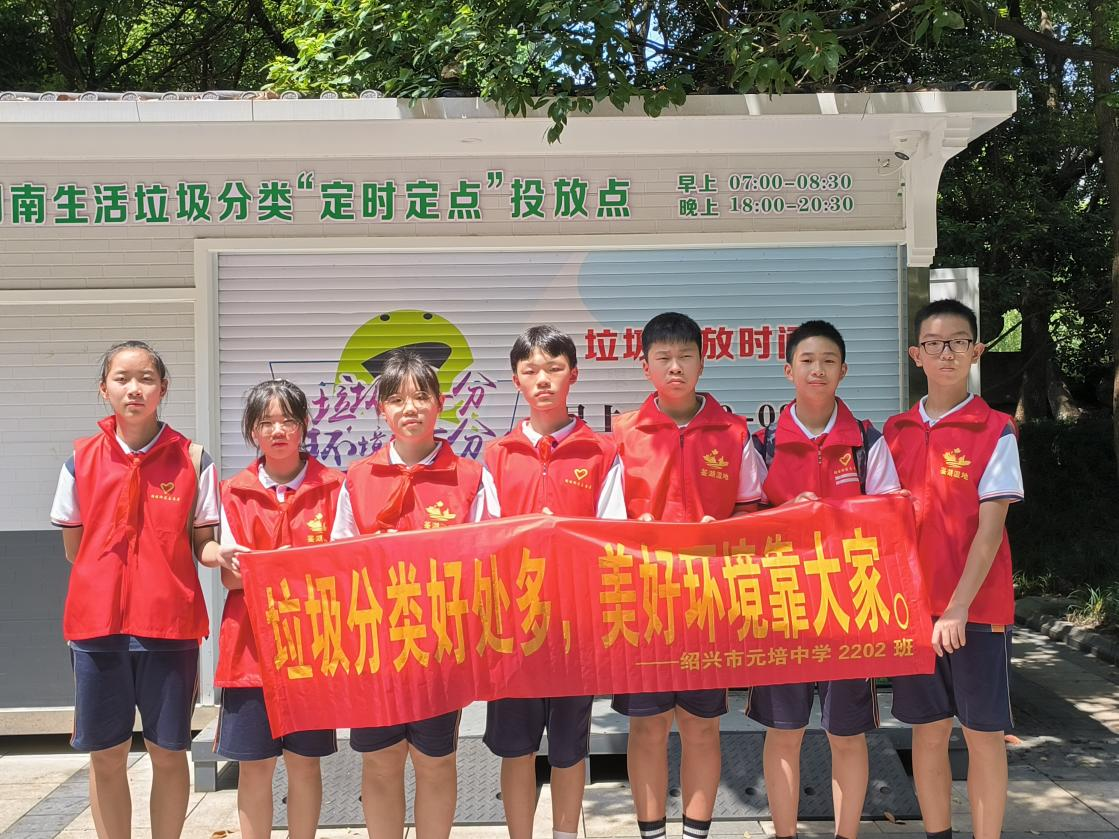 近日,浙江省绍兴市元培中学2202班启航小队在绍兴周恩来祖居和迪荡街道云东社区开展“垃圾分类齐行动,共筑绿色环保梦”暑期社会实践活动,宣传垃圾分类的知识,弘扬坚持走可持续发展道路的理念。