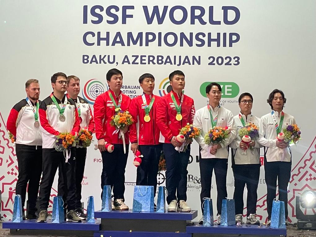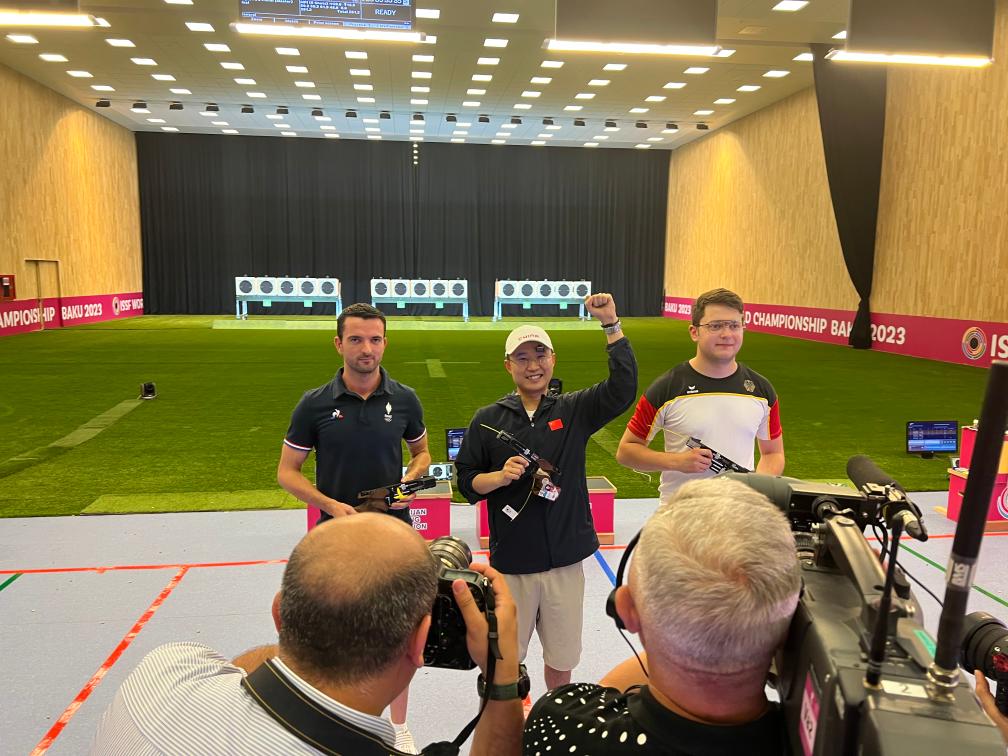 该项目比赛中,中国队老将新人都有出色发挥。首次参加国际比赛的王鑫杰资格赛打出588环排名第一,与位居次席的李越宏携手晋级决赛。他们两人与刘杨攀组成的中国队团体成绩1756环,追平了世界纪录,足足领先亚军德国队16环。