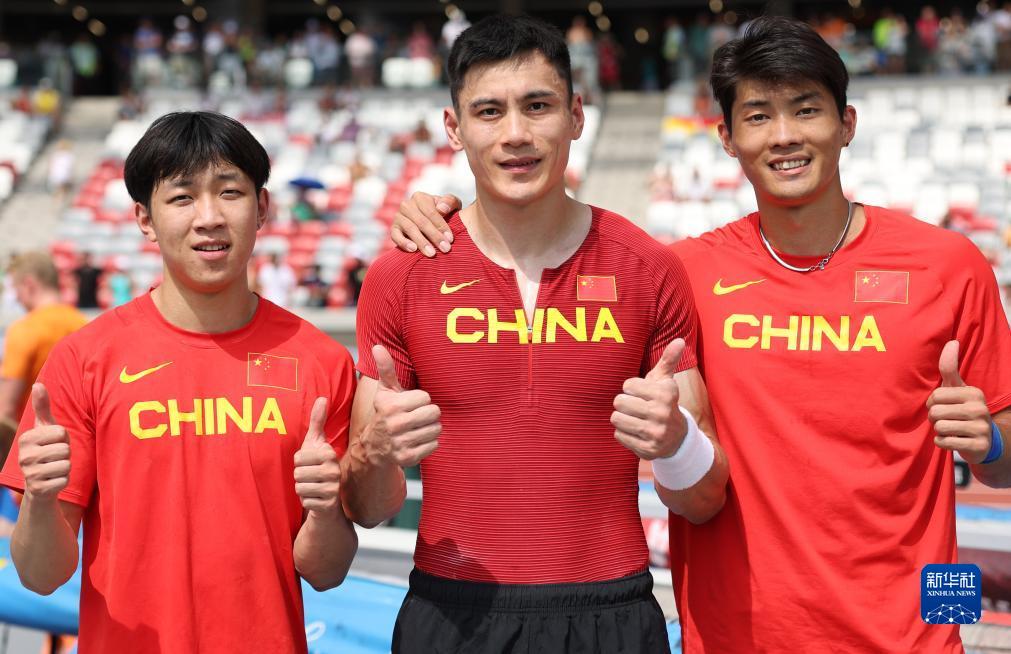 8月23日,姚捷(中)、黄博凯(右)和队友钟涛在资格赛后合影。新华社记者 李明 摄
