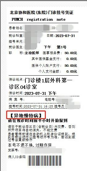 答:挂号成功后,挂号条会增加异地慢特病标识。
