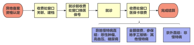 答:对于异地医保患者来说,北京协和医院目前可实现一种特病和两种慢病的直接结算,即恶性肿瘤(特病)、高血压(慢病)、糖尿病(慢病)。其余未开通异地直结的慢特病病种患者,请您务必在窗口全额结算,再回当地按慢特病报销。