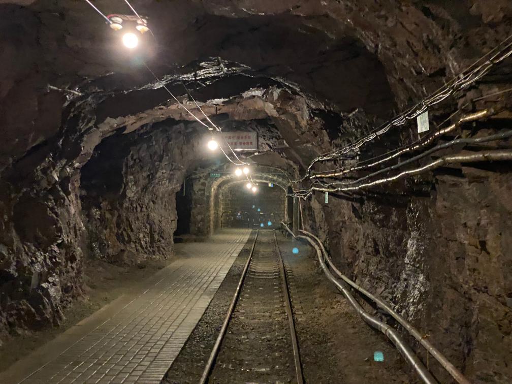 为增加游客体验,当地开设了小火车项目。戴上安全帽,乘坐小火车进入矿硐,一股寒气扑面而来。据介绍,硐内温度常年保持在16摄氏度至18摄氏度,地面湿滑,道路四通八达宛若迷宫,石壁上可以看到工人练习技术时留下的痕迹。