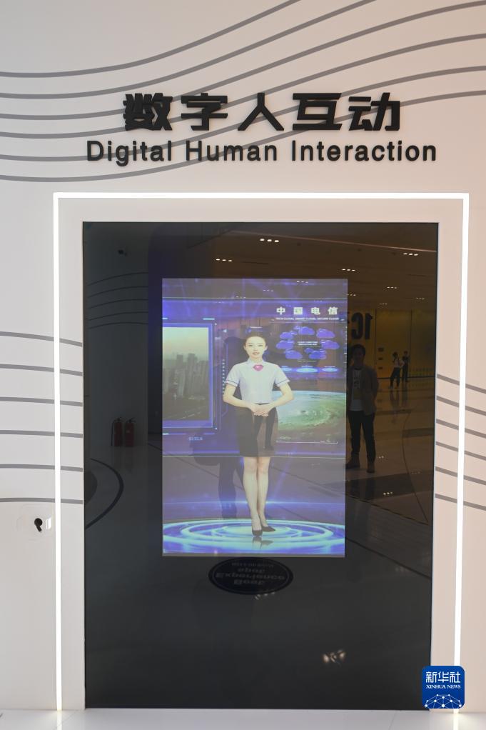 这是主媒体中心序厅内的数字人互动系统(9月1日摄)。新华社记者 徐昱 摄