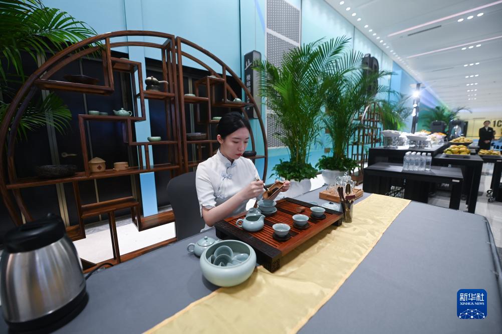这是主媒体中心的茶艺文化体验交流区(9月1日摄)。新华社记者 徐昱 摄