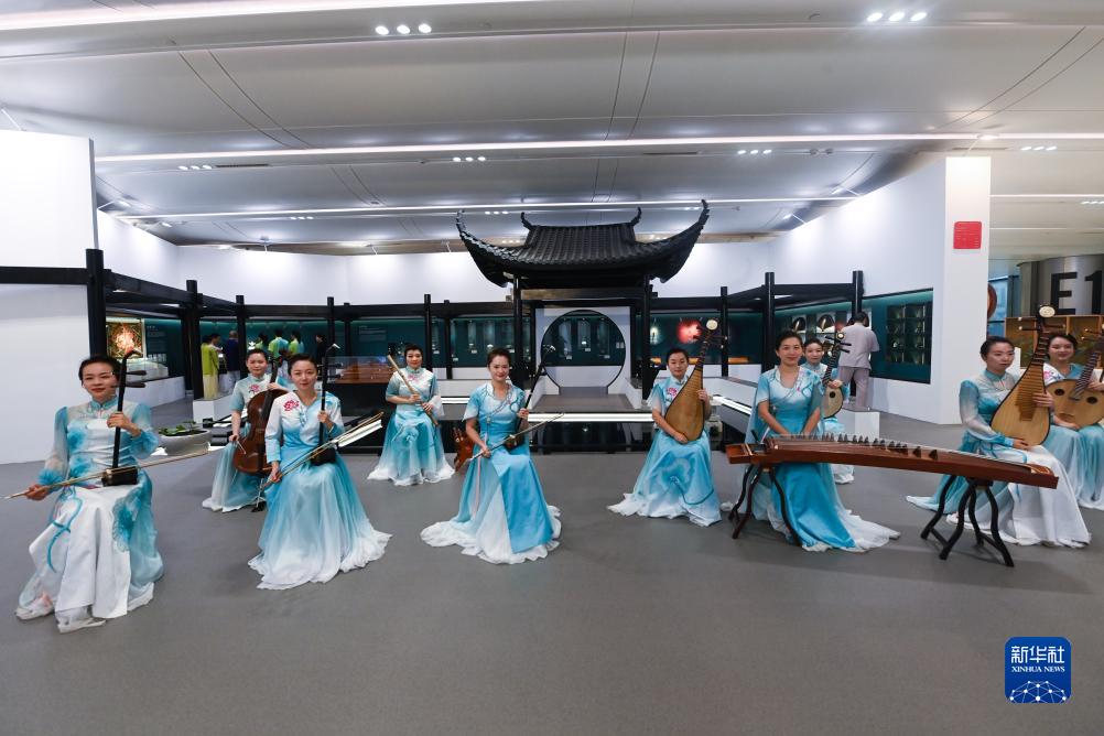 9月1日,演员在主媒体中心文化展厅内进行传统文化展示。新华社记者 徐昱 摄