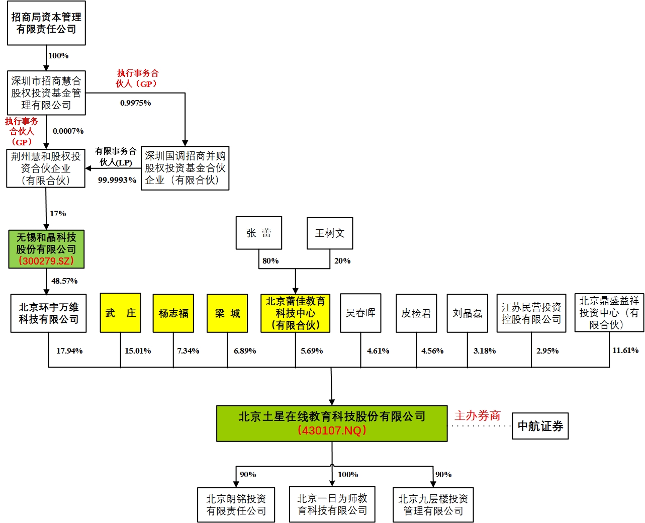 抽屉协议的主角之一是环宇万维(当时和晶科技持股44.61%),另一主角是ST土星实控人武庄及其一致行动人梁城、杨志福、北京蕾佳教育科技中心(有限合伙)(简称“蕾佳教育”)等。