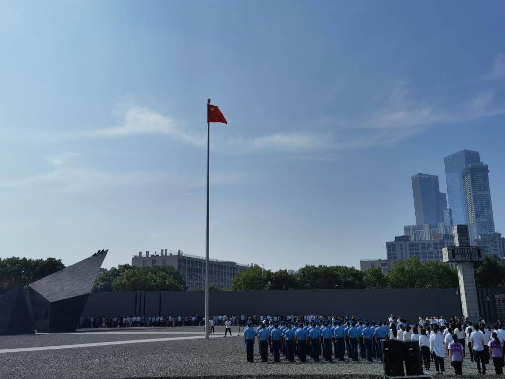 纪念馆外,参观者已排起长队。南京农业大学学生程宇选择这一天前往纪念馆,缅怀遇难同胞。“在纪念馆外听到国歌响起,看到国旗升起,我热泪盈眶。我们会记住历史,并在和平的今天更加珍惜当下的生活。”她说。