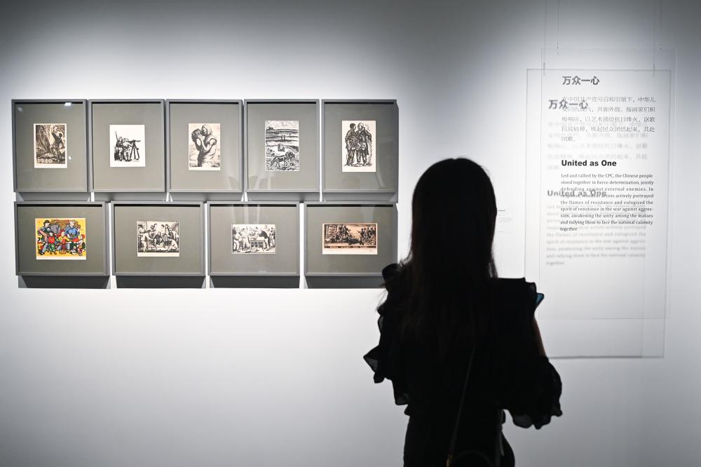 当日,“永远的铭刻——抗战历史记忆版画展”在纪念馆开展。