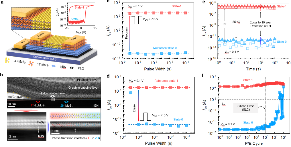 这一成果以《基于相变边缘接触的高速、耐久二维浮栅存储器》为题,于近日在线发表在国际学术期刊《自然·通讯》上。