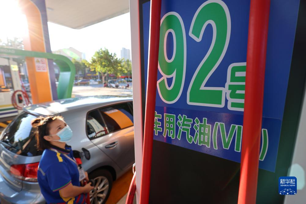 9月20日,山东省滕州市一加油站的工作人员给汽车加油。新华社发(李志军摄)