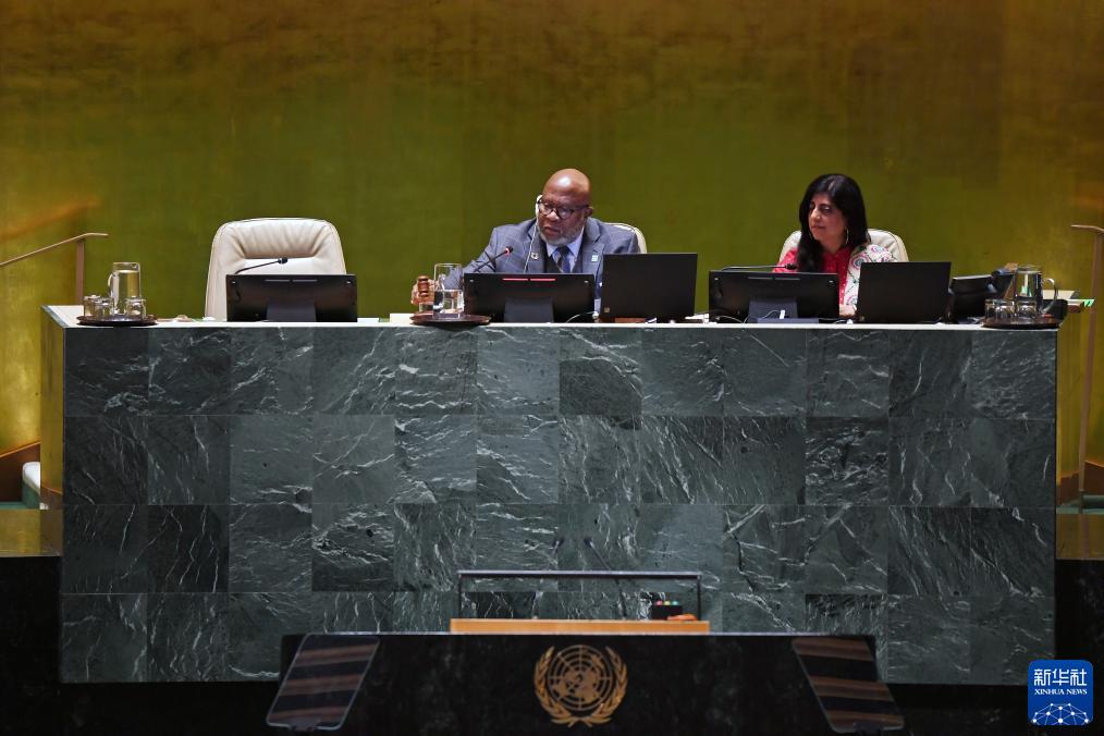 9月26日,在位于纽约的联合国总部,第78届联大主席弗朗西斯(左)宣布联合国大会一般性辩论闭幕。 新华社记者李睿摄