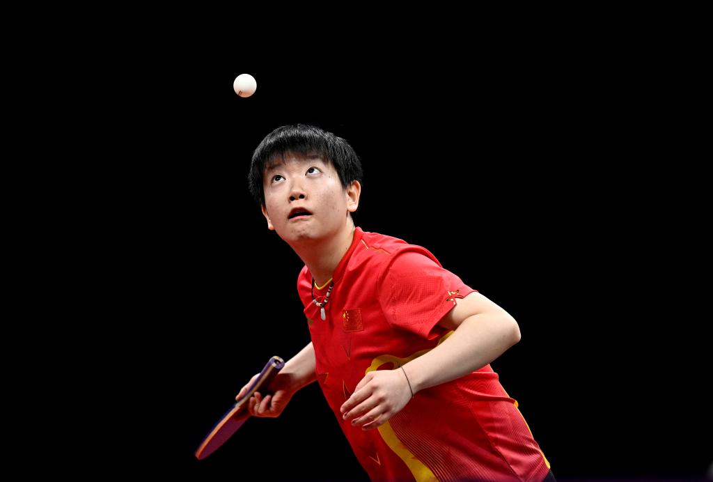 10月1日,孙颖莎在比赛中。新华社记者 王鹏 摄