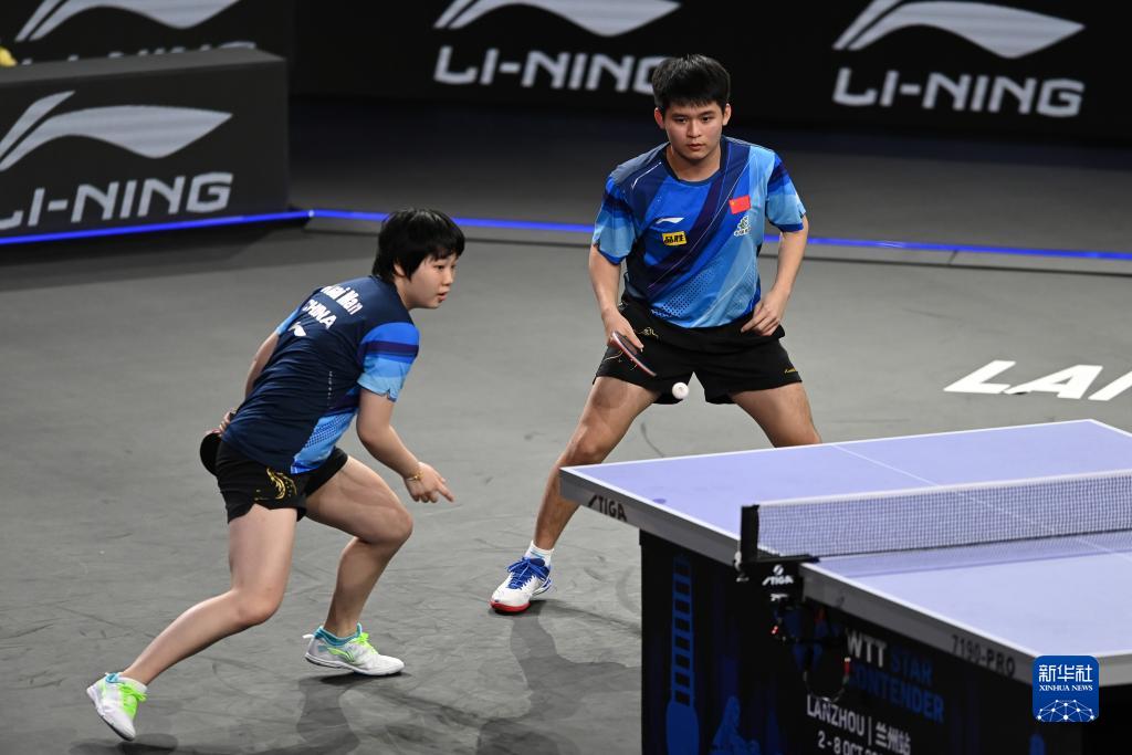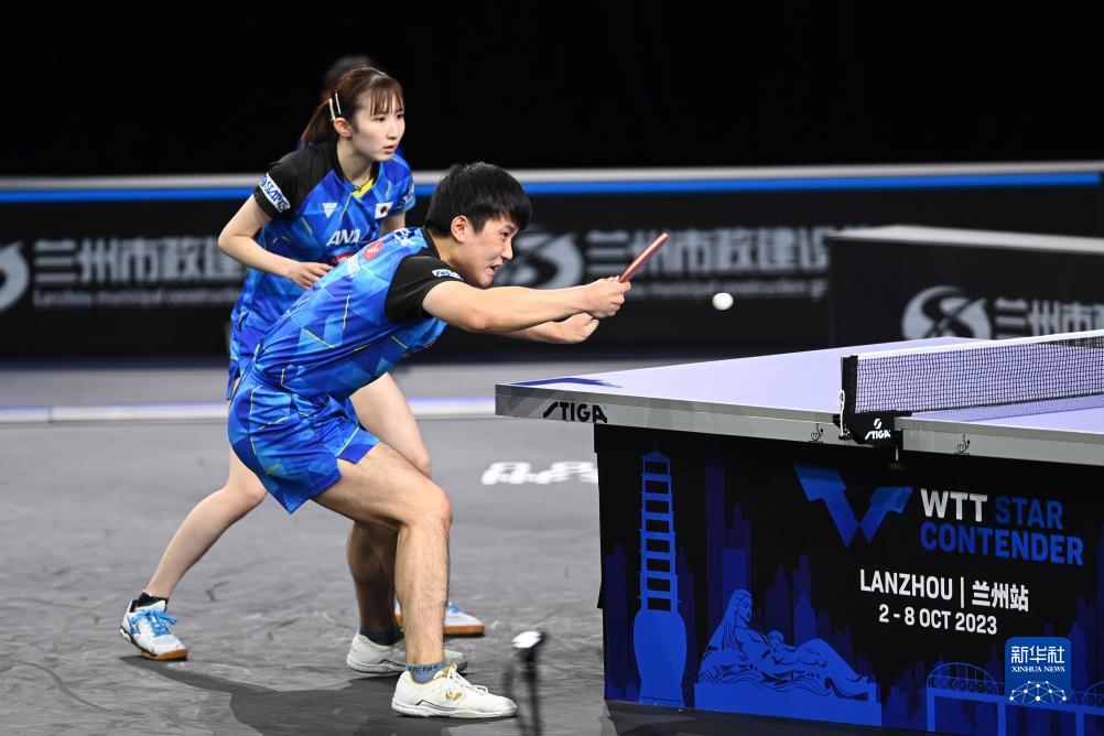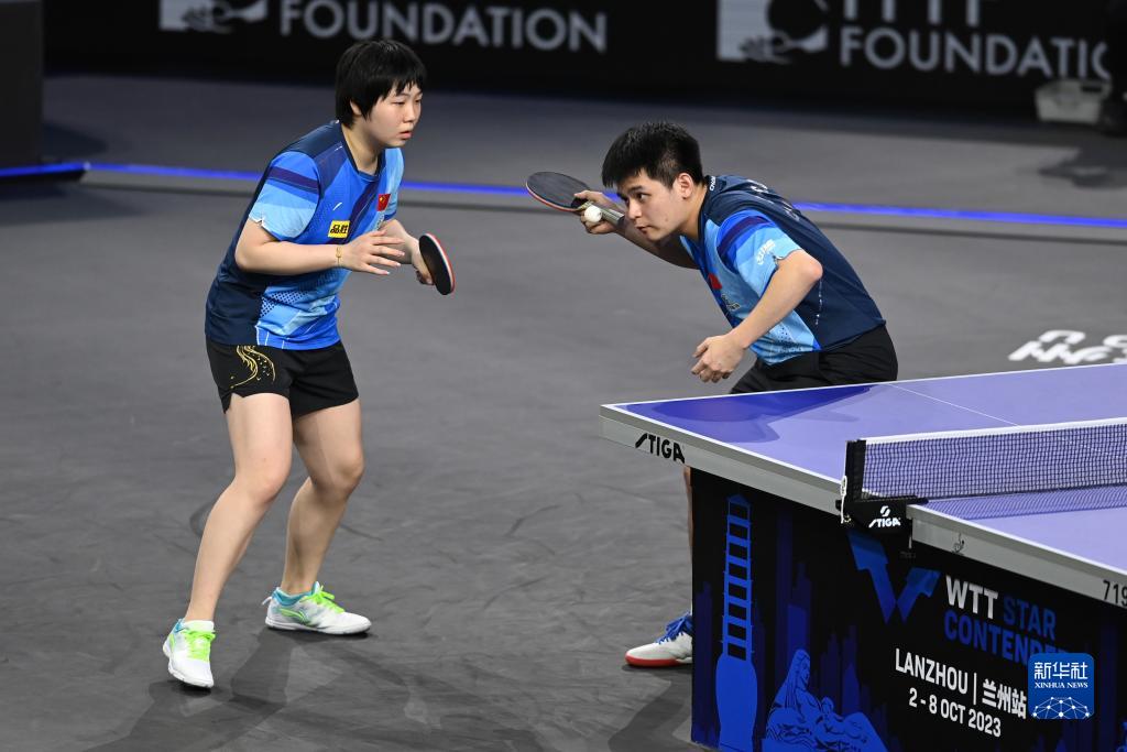 当日,在2023年世界乒乓球职业大联盟(WTT)球星挑战赛兰州站混双决赛中,中国组合林诗栋/蒯曼以3比2战胜日本组合张本智和/早田希娜,夺得冠军。