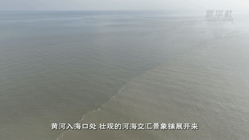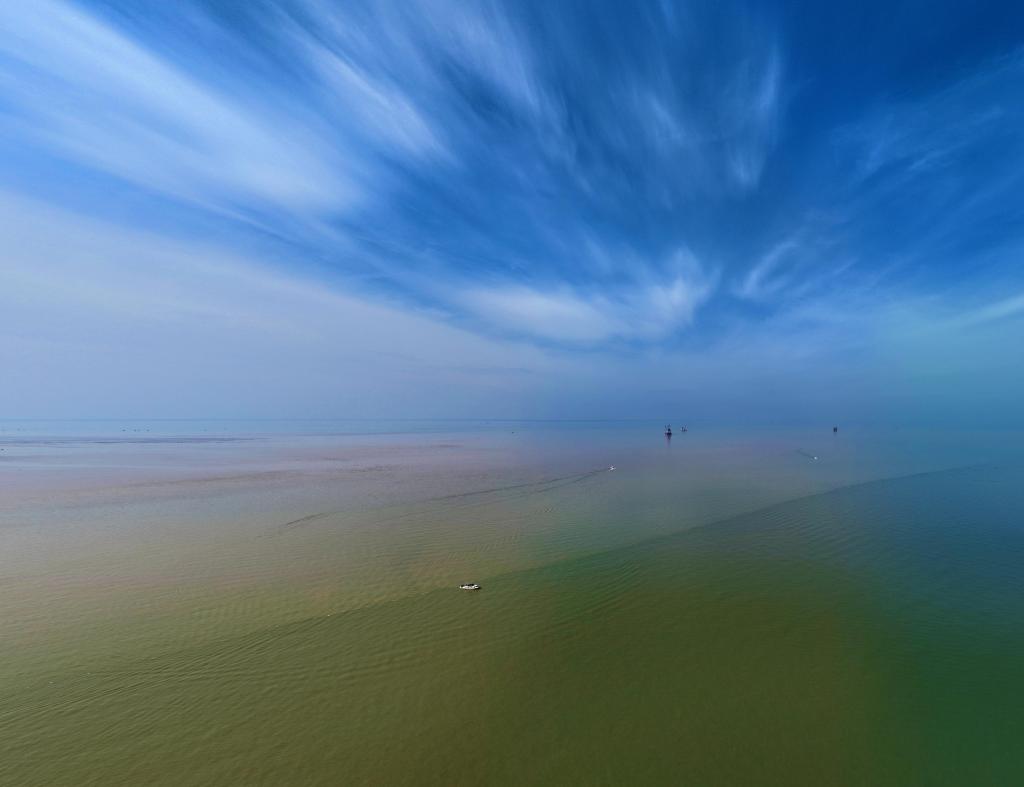 这是10月12日在黄河入海口拍摄的黄河与渤海交汇(无人机照片)。