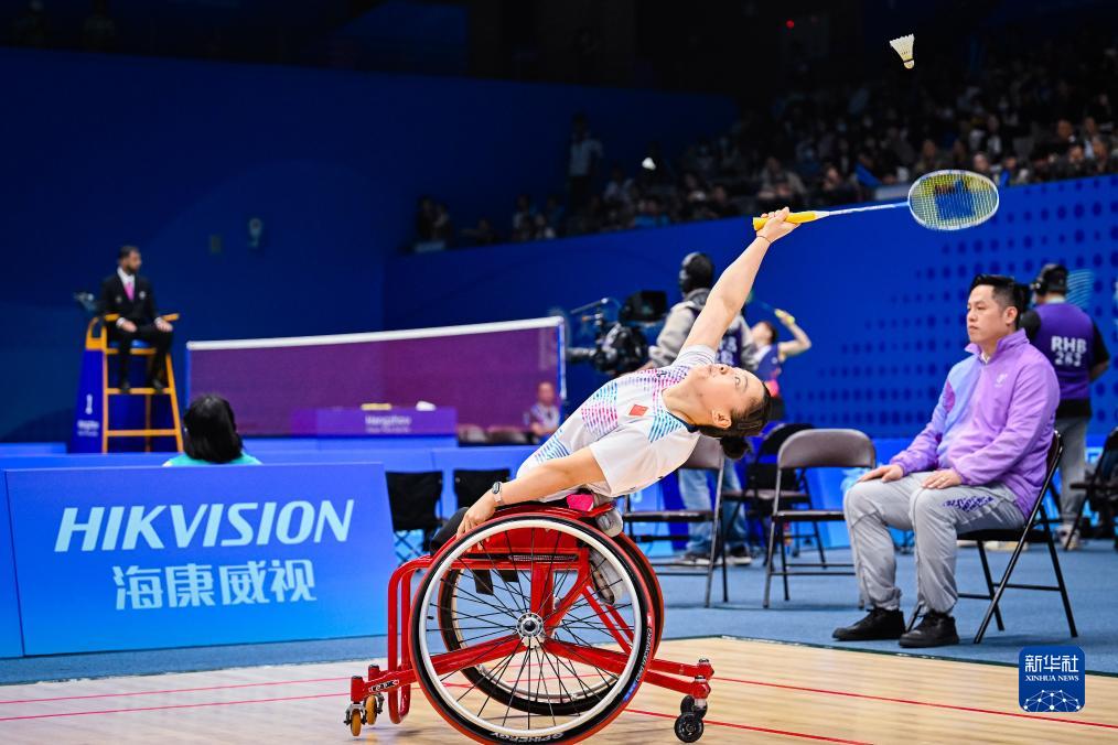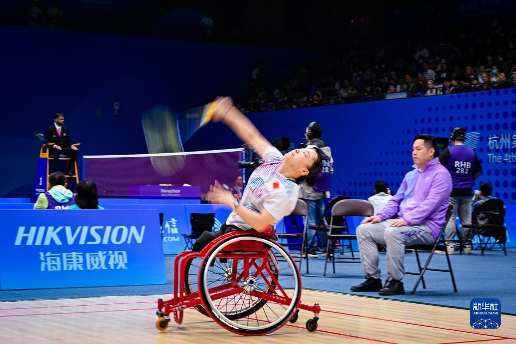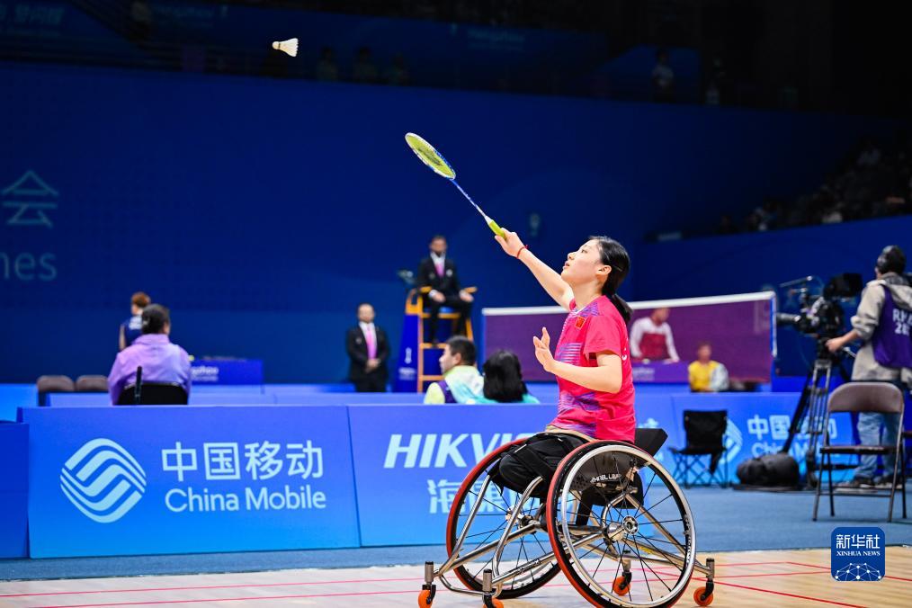 当日,在杭州第4届亚残运会羽毛球项目女子单打WH2级决赛中,中国选手刘禹彤以2比0战胜中国选手李红燕,夺得冠军。