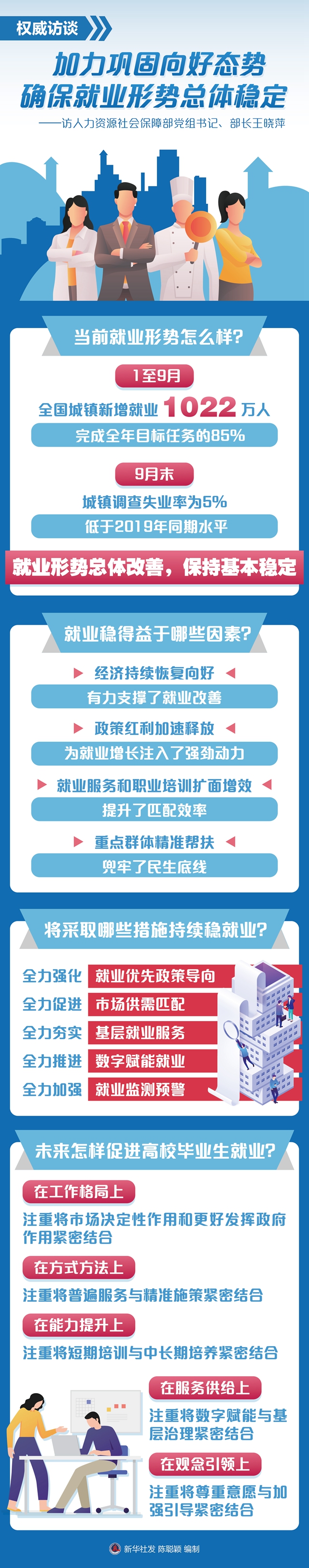 新华社北京11月6日电 题:加力巩固向好态势 确保就业形势总体稳定——访人力资源社会保障部党组书记、部长王晓萍