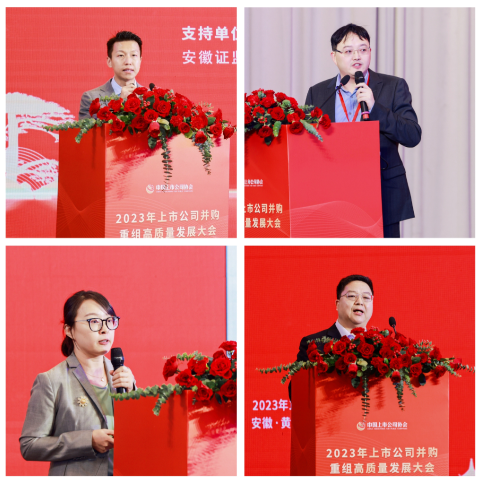 11月3日,中国上市公司协会2023年上市公司并购重组高质量发展大会在安徽黄山市召开。本次大会是由中国上市公司协会与黄山市人民政府主办,中上协并融委、华安证券股份有限公司、黄山旅游发展股份有限公司和中智科学技术评价研究中心承办,安徽证监局支持。安徽省政协党组成员、副主席周喜安,黄山市委副书记、市长何毅,中上协党委书记、执行副会长柳磊出席大会并致辞,中上协党委委员、副会长孙念瑞作总结发言。来自国家文化和旅游部、国家金融监督管理总局、国务院国资委、中国证监会、安徽证监局、沪深北证券交易所相关负责人,上市公司、金融机构、地方金融发展局、地方上市公司协会等代表及行业专家近200人出席大会。