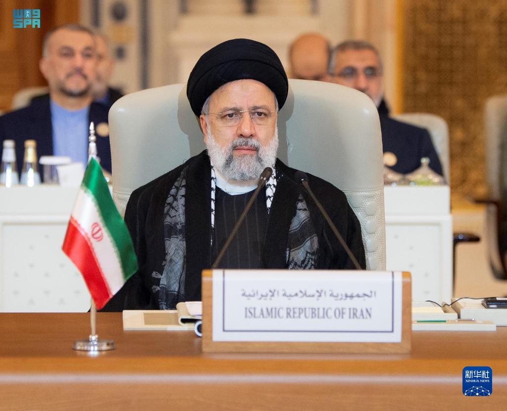 11月11日,在沙特阿拉伯首都利雅得,伊朗总统易卜拉欣·莱希出席阿拉伯-伊斯兰国家领导人联合特别峰会。新华社发(沙特通讯社供图)