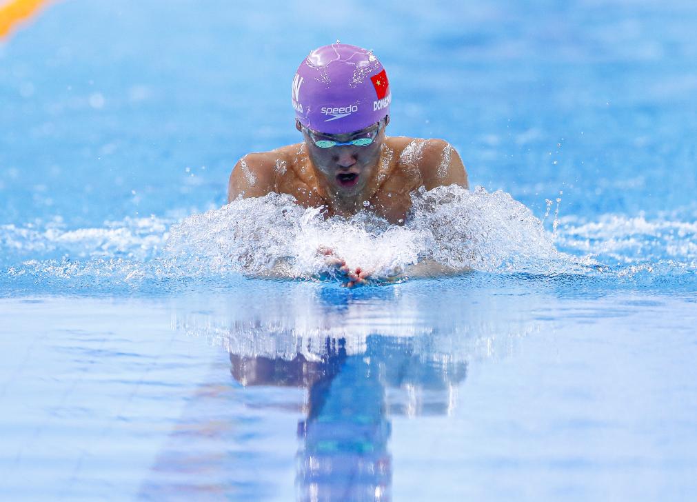 11月1日,南京市选手董志豪获得首届学青会游泳项目男子100米蛙泳公开组冠军。新华社记者胡星宇摄