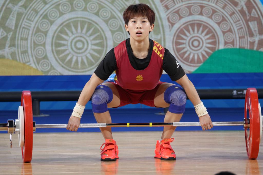 在举重女子45公斤级比赛中,福建选手徐璐莹抓举85公斤平世界纪录