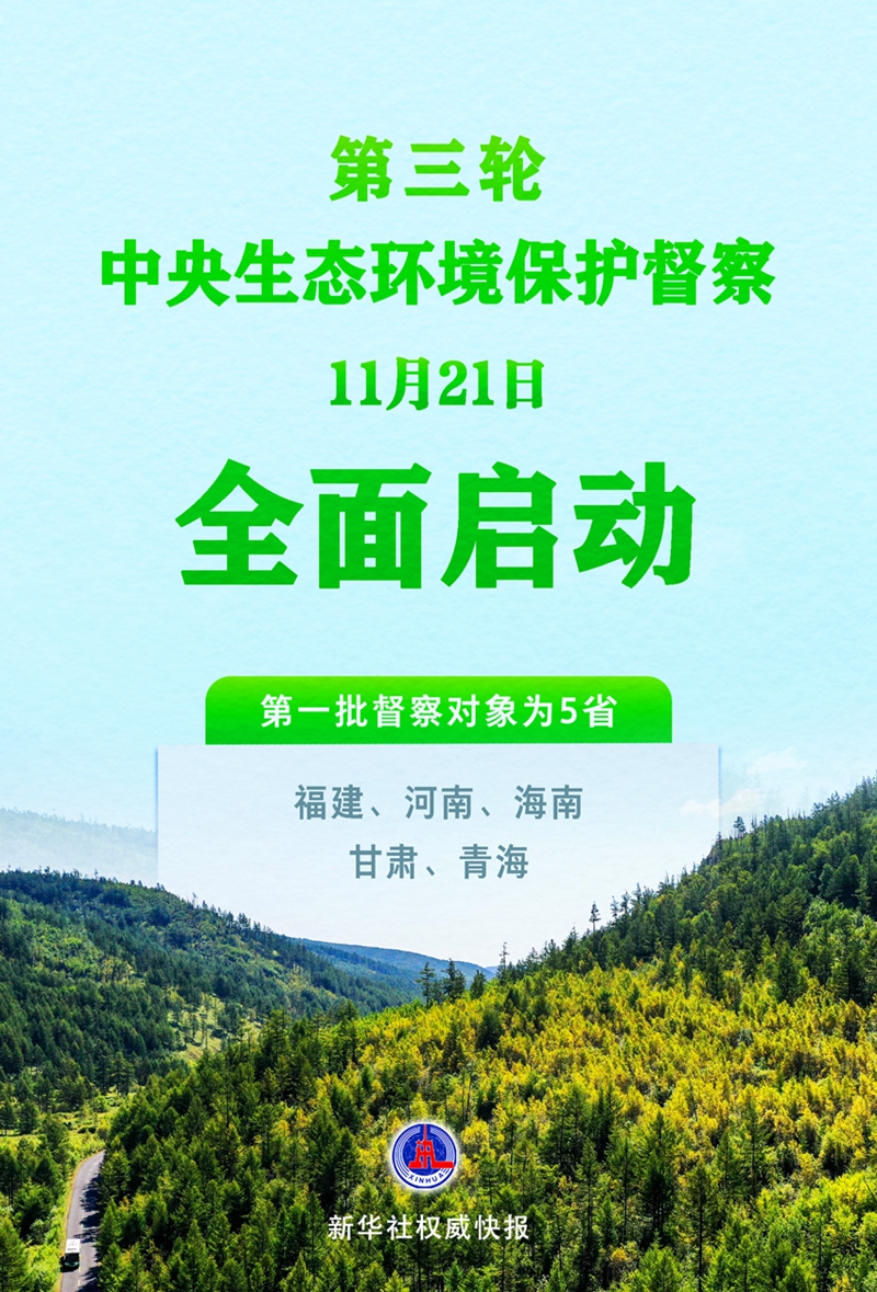 根据《中央生态环境保护督察工作规定》,经党中央、国务院批准,第三轮中央生态环境保护督察于11月21日全面启动。