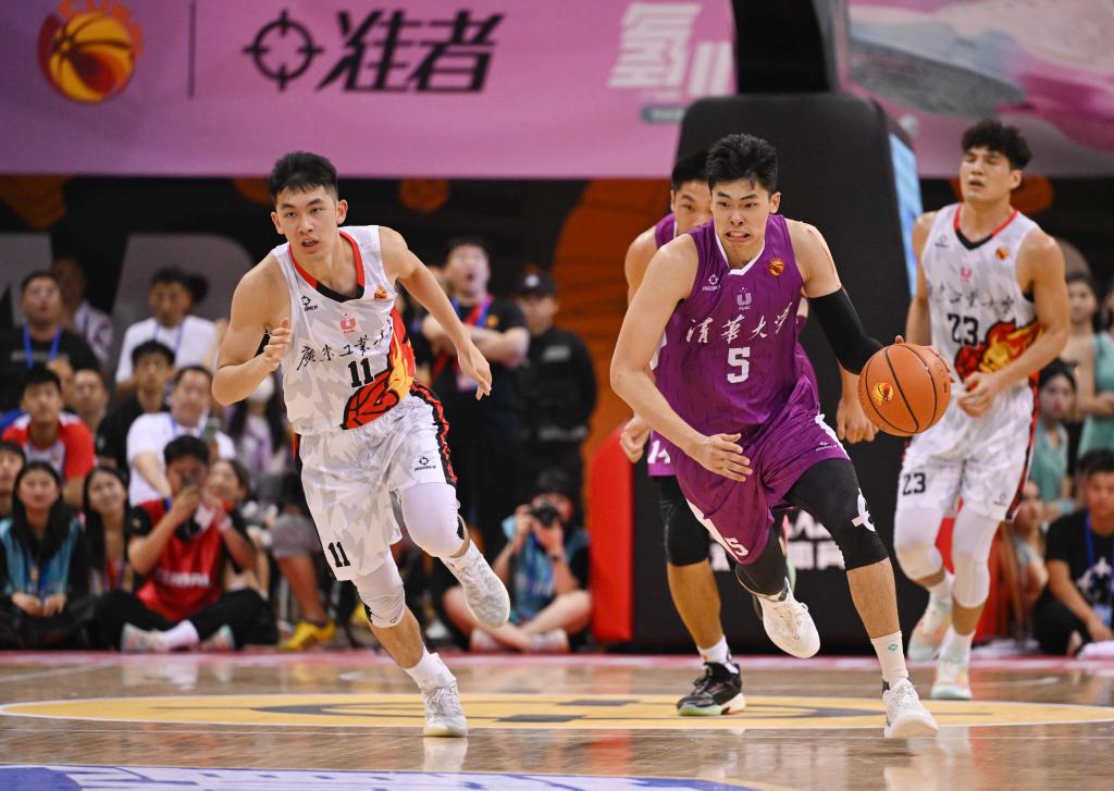 6月18日,当时效力于清华大学队的邹阳(右二)在CUBAL总决赛中带球突破。新华社记者 胥冰洁 摄