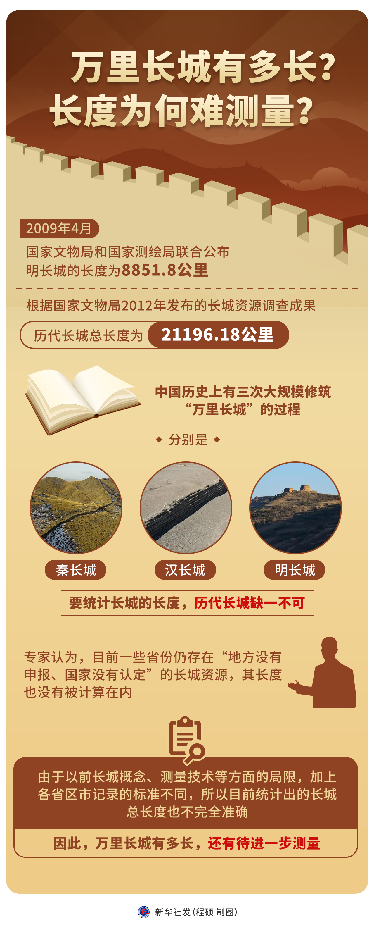 赵琛说,由于以前长城概念、测量技术等方面的局限,加上各省区市记录的标准不同,所以目前统计出的长城总长度也不完全准确,知名古建筑学家罗哲文认为,我国历代长城长度总和至少有5万公里。因此,万里长城有多长,还有待进一步测量。