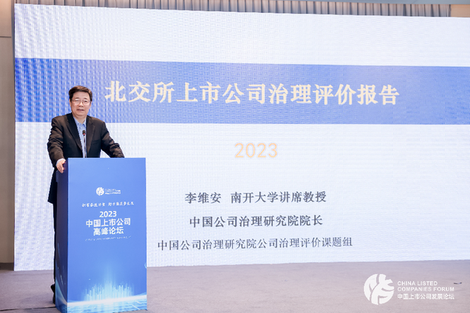 南开大学讲席教授、中国公司治理研究院院长李维安代表课题组对《报告》进行了介绍。据称,该报告是中国公司治理研究院在连续二十一年发布中国上市公司治理指数,并连续六年开展大湾区、深圳市、泉州市等地区上市公司治理评价的基础上,首次将中国上市公司治理指数(CCGINK)应用于特定市场板块,不仅拓展了指数的应用范围,也为提升北交所上市公司治理质量提供支持。