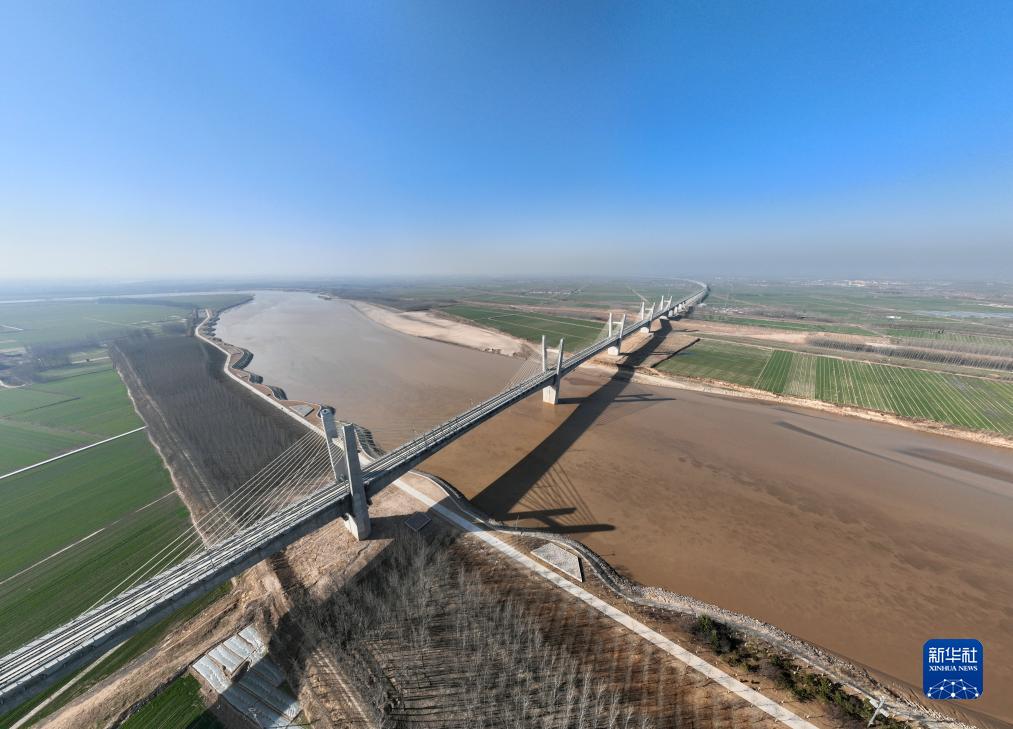 12月8日拍摄的济郑高铁长清黄河铁路特大桥(无人机照片)。新华社记者 邢广利 摄