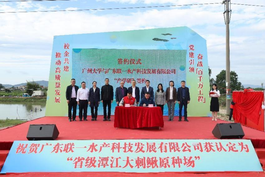 日前,广东首个省级水产原种场——广东联一水产科技发展有限公司(简称“联一水产”)省级水产原种场揭牌落户开平市月山镇,并与广州大学举行“产学研”签约仪式,广州大学党委常委、副校长邢锋,省农业农村厅渔业发展处副处长巫佳伟,开平市领导余中华、黄惠红、张伟业等出席活动。