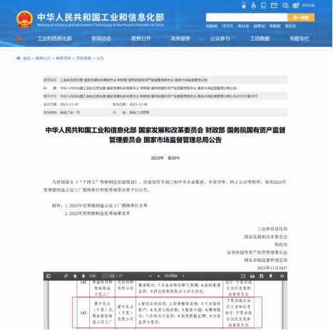 近日,工业和信息化部、国家发展改革委、财政部、国务院国资委、市场监管总局联合发布“2023年度智能制造示范工厂揭榜单位”和“2023年度智能制造优秀场景公示”名单,蒙牛集团旗下宁夏工厂荣获“智能制造示范工厂揭榜单位”荣誉称号。作为中国乳业国家队,蒙牛全面落实“更智慧、更营养、更绿色”领先战略,积极引领乳业数智化转型,再次获得国家级认可。