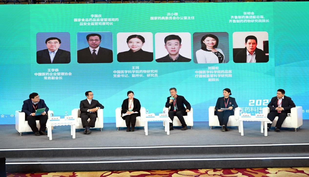 在16日上午举办的“搭建医药行业政产学研用服综合平台,帮促建设国家级创新机构与成果转化”主论坛上,中国医药企业管理协会副会长王学恭主持高端对话,国家食品药品监督管理局药品安全监管司原司长李国庆,中国医学科学院药物研究所党委书记、副所长、研究员王珂,国家药典委员会办公室主任洪小栩,中国医学科学院药品医疗器械监管科学研究院副院长刘丽宏教授,齐鲁制药集团副总裁、齐鲁制药药物研究院院长张明会等五位嘉宾围绕国家医药科技政策与新药注册(机遇与挑战)进行探讨。