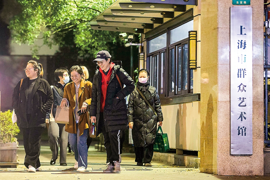 下课铃响,夜校学员走出上海群艺馆。受访者供图