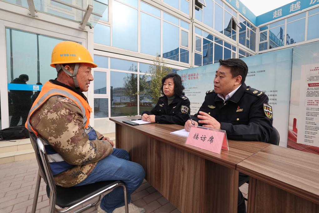 图为北京市根治拖欠农民工工资工作协调小组在新国展二期建设工地进行现场接访。(北京市人社局供图)